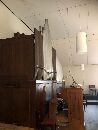 I. Manual und Ped. hinter dem Spieltisch, rechts seitlich der Hauptorgel steht das II. Manual (SW).