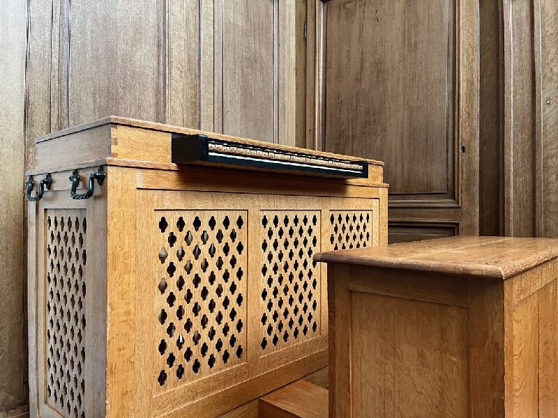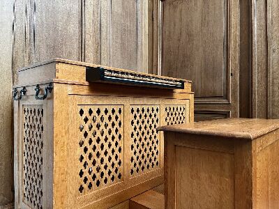Im Gesamtpreis ist die Orgelbank so wie ein Transportwagen und eine Schutzdecke enthalten.