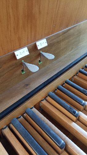 In diese Orgel wurden noch nachträglich 4 elektronische Zusatzregister eingebaut. Wenn diese nicht benötigt werden so können sie einfach ausgebaut und entfernt werden