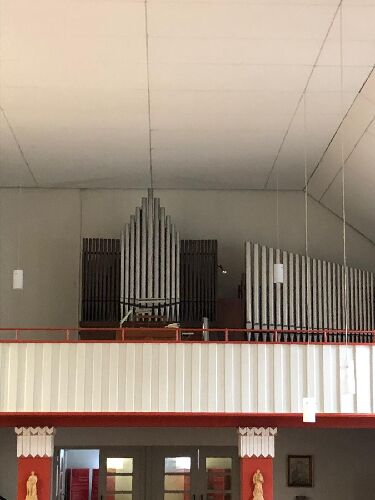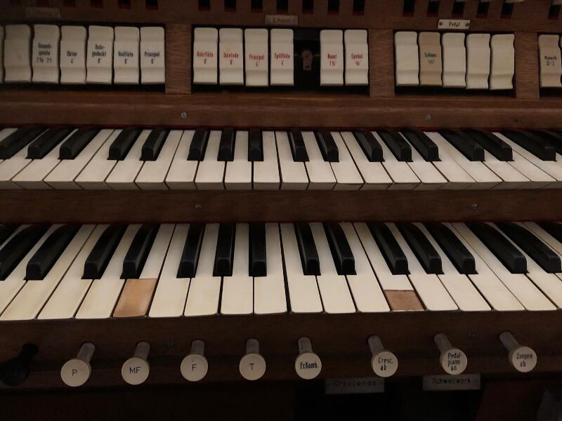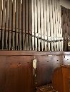 I. Manual und Ped. hinter dem Spieltisch, rechts seitlich der Hauptorgel steht das II. Manual (SW).