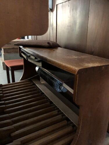 Pneumatische G.F. Steinmeyer Orgel mit 2 Manulen und Pedal zu verkaufen. Das Instrument befindet sich in schlechtem Zustand und müsste grundlegend restauriert werden.
